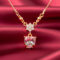 Add a pop of romantic color to your look with this stunning Pink Stone Heart Necklace by Shri Aabhushanam. The design features a prominent heart-shaped pink crystal held in a secure gold-toned setting, suspended from a floral-inspired connector studded with clear stones. This piece beautifully merges the vibrancy of traditional jewellery with the simplicity of modern design. The gold-plated jewellery finish enhances the warm tones of the pink stone, making it an ideal choice for women who love feminine and dainty accessories. It is perfect for daytime events, brunch dates, or as a thoughtful gift for a loved one. Pair this necklace with a white lehenga or a floral dress to create an effortlessly elegant look. Its refined craftsmanship ensures it remains a cherished part of your Shri Aabhushanam jewellery collection.